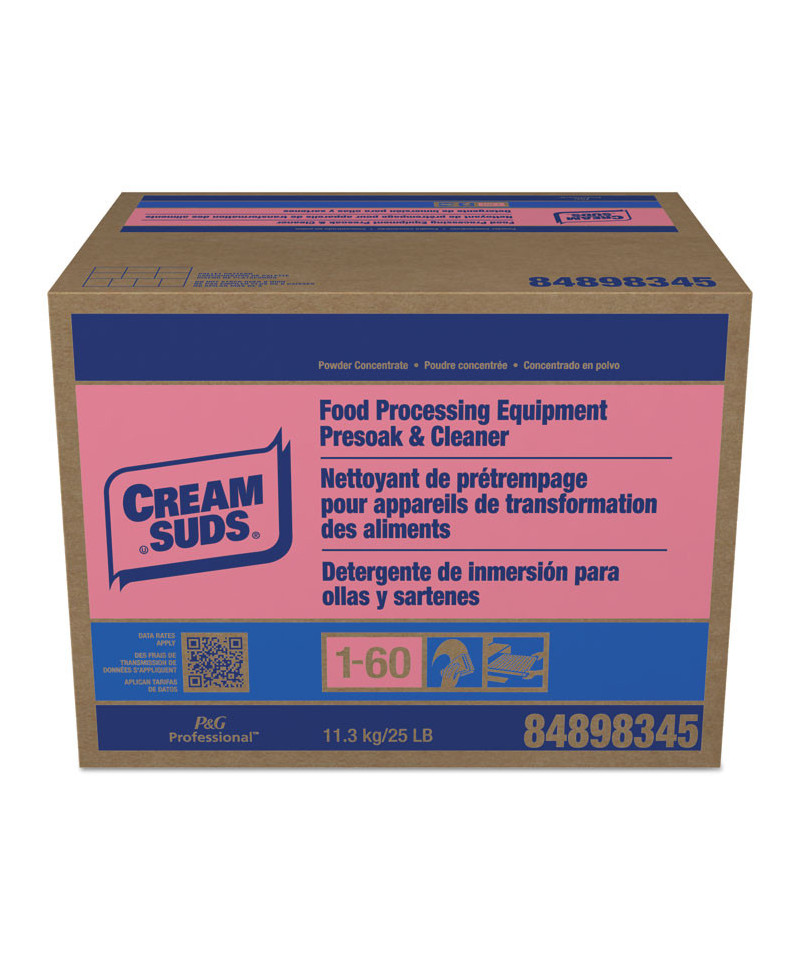 Cream Suds® Dishwashing Detergent pot and pan presoak and detergent is designed for soaking tough, baked-on foods from pots and pans. Unique formula is effective on greasy soils and can be used on a wide variety of washable surfaces such as floors, walls, stainless steel, and countertops (0.5 to 1 cup per 4-gallon bucket). Pink color and baby powder scent.