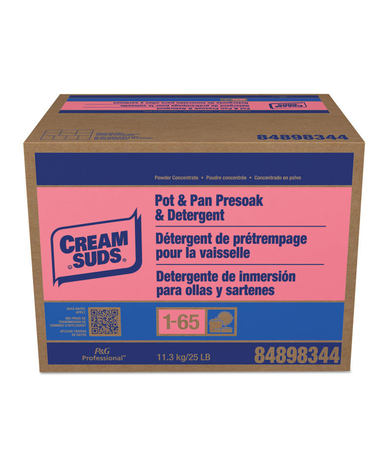 Cream Suds® Dishwashing Detergent pot and pan presoak and detergent is designed for soaking tough, baked-on foods from pots and pans. Unique formula is effective on greasy soils and can be used on a wide variety of washable surfaces such as floors, walls, stainless steel, and countertops (0.5 to 1 cup per 4-gallon bucket). Pink color and baby powder scent.
