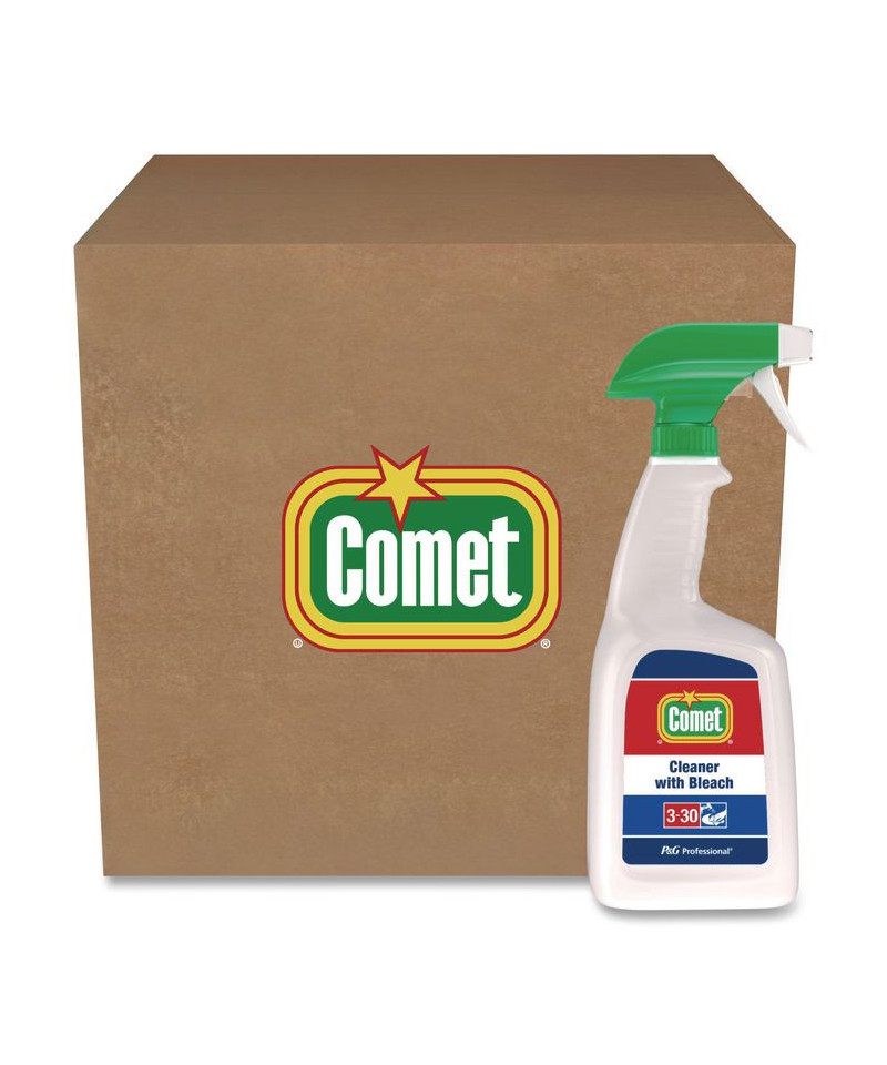 Comet Disinfecting Cleaner With Bleach is a two-in-one all purpose cleaner formula that combines the cleaning power of heavy-duty detergents with the stain-removal power of bleach. A hospital-use disinfectant when used per label instructions, Comet Disinfecting Cleaner with Bleach is effective as a disinfectant in 60 seconds against Hepatitis A and C, Norovirus, and 39 other microorganisms†† * Comet Disinfecting Cleaner With Bleach contains no abrasives and uses remarkable cleaning technologies that may be used to clean customer and employee restrooms, tracked-in dirt and scuffmarks, kitchen-area stains, plastic trash containers, greasy equipment containers and other surfaces. ††See EPA master label for full list of organisms and contact times