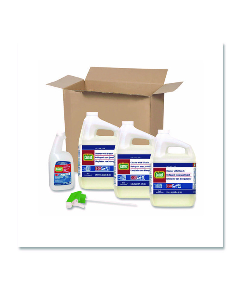 Comet Disinfecting Cleaner With Bleach is a two-in-one all purpose cleaner formula that combines the cleaning power of heavy-duty detergents with the stain-removal power of bleach. A hospital-use disinfectant when used per label instructions, Comet Disinfecting Cleaner with Bleach is effective as a disinfectant in 60 seconds against Hepatitis A and C, Norovirus, and 39 other microorganisms†† * Comet Disinfecting Cleaner With Bleach contains no abrasives and uses remarkable cleaning technologies that may be used to clean customer and employee restrooms, tracked-in dirt and scuffmarks, kitchen-area stains, plastic trash containers, greasy equipment containers and other surfaces. ††See EPA master label for full list of organisms and contact times
