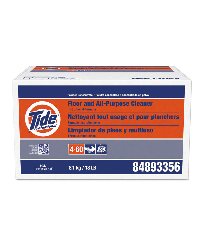 Tide® PRO all-purpose floor cleaner is an economical and versatile cleaning solution that removes tough grease and lifts away tracked-in dirt. This multi surface cleaner can be used with chlorine bleach and works great in all areas of the kitchen. It can be used on floors, walls, pots and pans, quarry tiles and other unwaxed floors, exhaust filter screens and hoods, cooler ceilings, walls and racks, mop heads, and outside areas, like concrete and dumpsters. It is formulated for industrial use.