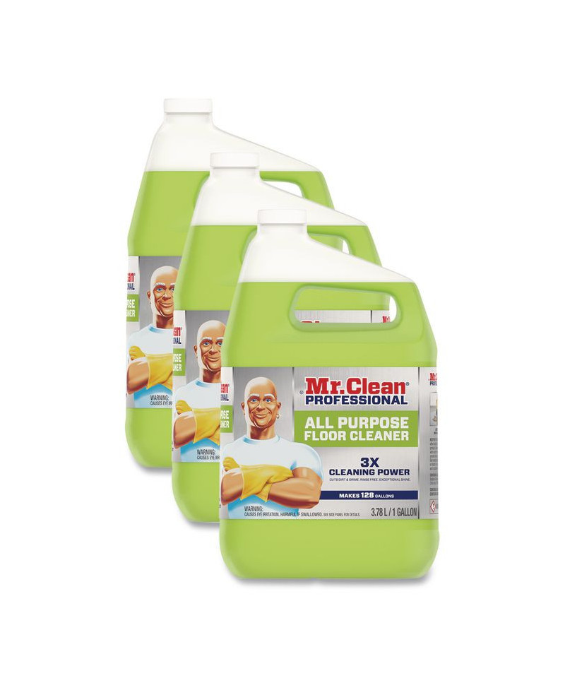 Mr. Clean® Professional All-Purpose Floor Cleaning Liquid is a powerful commercial-grade floor cleaning solution specifically designed to remove dirt and grime from finished floors. This versatile floor cleaning concentrate works effectively on all types of floors, including terrazzo, vinyl, hardwood, finished, tile, restroom floors and more. Not only does it serve as a top-rated floor cleaner for hard floors, but it also adds exceptional shine to your surfaces while leaving a gentle lemon scent. One gallon of this floor cleaning concentrate makes up to 128 gallons of cleaning solution for mop and bucket cleaning.