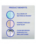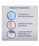 Cleans to a brilliant shine. Tackles tough cleaning challenges like lime scale and soap scum. Wipes away dirt and grime with little or no scrubbing. Kills 99.9% of viruses and bacteria when used as directed. Leaves your bathroom smelling clean and fresh. For use on shower doors, tubs, glazed tile, vanity tops, sinks and chrome fixtures.
