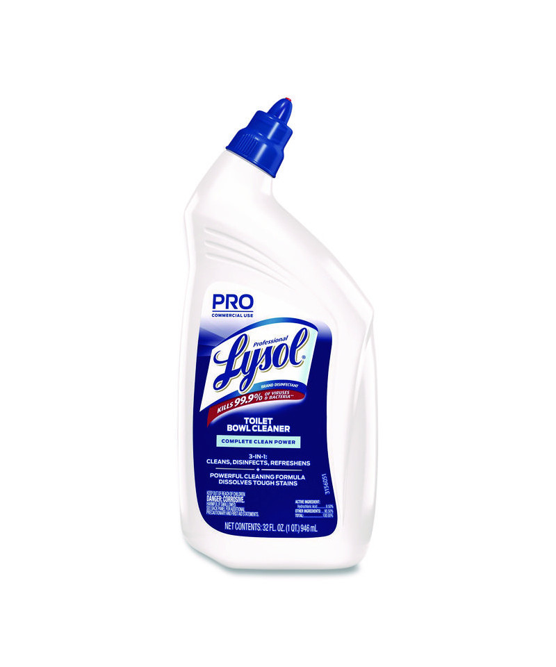 Clean, disinfect, and deodorize toilet bowls to give guests a clean, pleasant bathroom experience. Meet staff and customer expectations around cleanliness with Lysol Professional Disinfectant Toilet Bowl Cleaner. Help your staff tackle tough rust and mineral stains with a thick 9.5% hydrochloric acid formula that coats the bowl above and below the waterline. Optimize restroom cleaning time with a powerful formula that shines and removes stains. Lysol kills 99.9% of viruses and germs, including bacteria that causes odors, on hard non-porous surfaces when used as directed. Will not harm plumbing or septic systems.