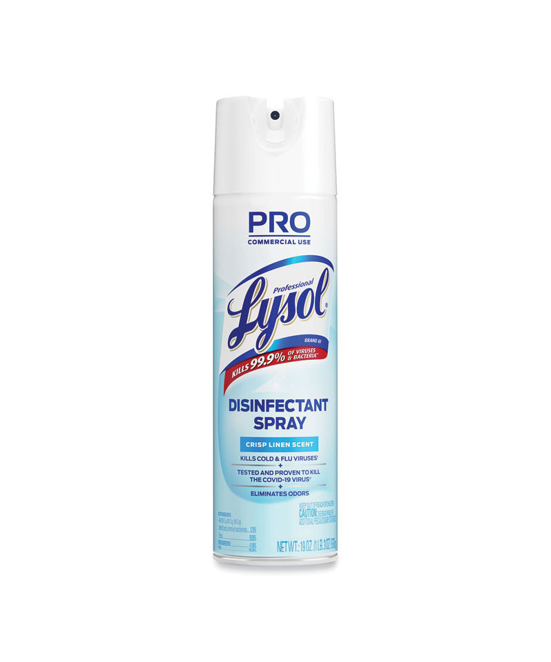 Boost customer confidence with Lysol Professional Disinfectant Spray that's safe to use on hard and soft surfaces. Lysol kills 99.9% of viruses and bacteria, including the virus that causes COVID-19 in 15 seconds, as well as cold and flu viruses when used as directed. Help protect high-traffic areas and high-touch surfaces, including desks, bathrooms, doorknobs, and railings. Deliver hospital-type disinfection into soft surfaces, including upholstery, curtains, sofas, mattresses, and cushions. Meet customer and staff expectations around disinfection. Simply spray and let air dry.