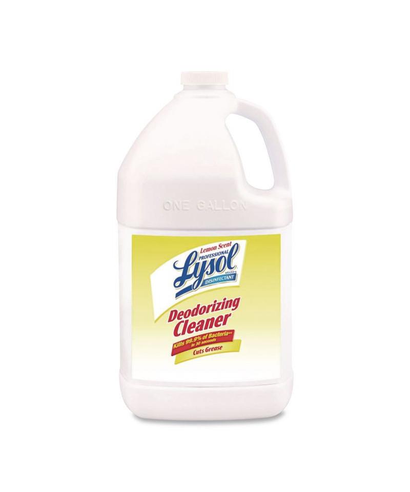 Optimize cleaning efficiency and meet commercial disinfection needs with Professional Lysol® Disinfectant Deodorizing Cleaner. Give cleaning crews a versatile formula that cleans, disinfects, and deodorizes. This economical, concentrated solution makes up to 64 gallons of cleaning action that crews can use on a wide range of hard, non-porous surfaces when used as directed. To disinfect, dilute 1 oz of product with 5 oz of water. This product is bactericidal, virucidal, and germicidal when used as directed. Destroy 99.9% of bacteria in 60 seconds. Remove dirt, grease, and grime, and leave behind a familiar lemon scent.