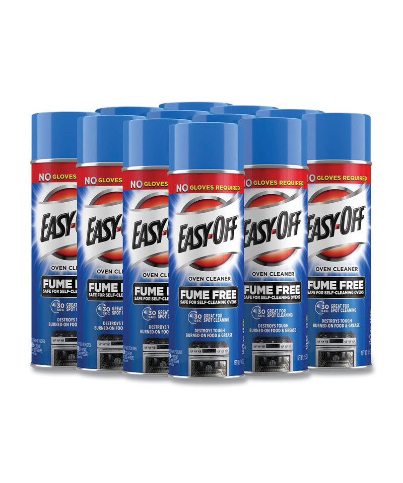 Destroy tough, baked-on grease fast and without the fumes using EASY-OFF Fume Free Oven Cleaner. Give cleaning crews a formula they can use without gloves and during operating hours to clean ovens, oven doors, broilers, broiler pans and stainless-steel surfaces. Simply spray, wait 30-60 seconds, and wipe away for an effective daily spot clean or leave it on longer for deeper cleaning. Cover both daily upkeep and longer oven cleans with the fume-less formula that leaves a pleasant scent. Safe for self-cleaning ovens.