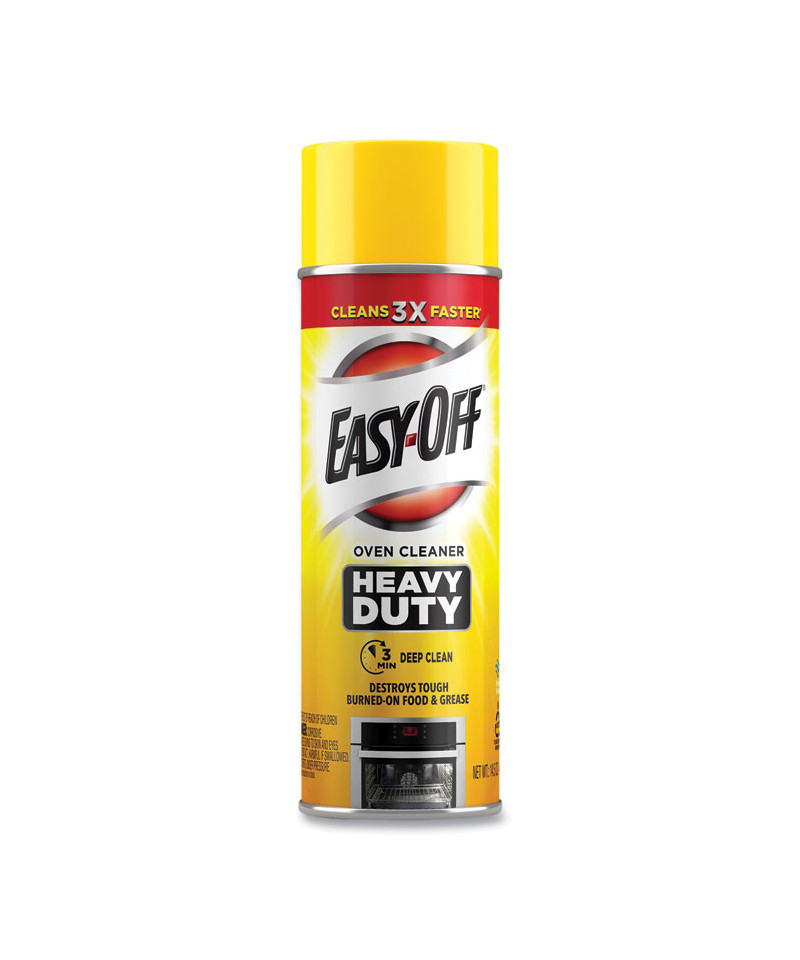 Keep commercial ovens clean and degreased with EASY-OFF Heavy Duty Oven and Grill Cleaner. This heavy-duty formula cuts through burned-on food and grime in as little as three minutes when used as directed. Optimize cleaning time with a product that cleans 3x faster than the fume-free formula. Add a versatile, flexible oven cleaner to your supply closet that can spot clean in as little as 30 seconds or destroy burned-on buildups through longer soaking when used as directed. Works on cold and warm surfaces, so you don't have to wait to get ovens and oven doors, broilers, broiler pans and stainless-steel surfaces spot- and grease-free.