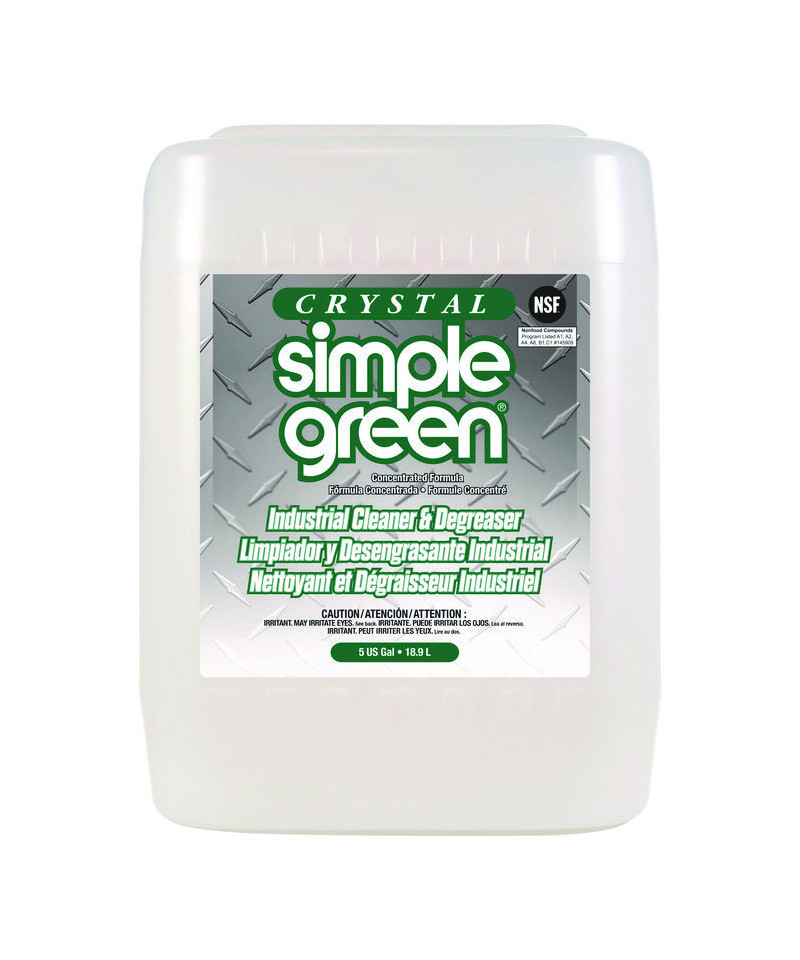 Crystal Simple Green is a powerful, industrial-strength cleaner and degreaser with no added color or scent. The concentrated, non-flammable, clean-rinsing formula cuts through tough grease and grime. NSF registered A1, A2, A4, A8, B1 and C1 for use in food facilities.