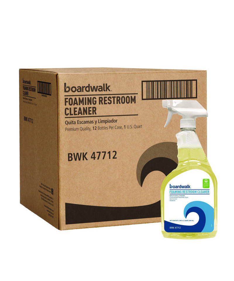 Boardwalk® All-Natural Bathroom Cleaner is a bleach-free bathroom cleaner. Formula is nontoxic, with no harsh chemicals or harsh fumes. The cleaner safely cuts through dirt and soap scum, leaving surfaces clean and streak-free. Can be used on a variety of hard surfaces including sinks, toilets, countertops, tile, and bathroom fixtures. 32 oz bottle with built-in dispenser that can be sprayed directly onto the surface.