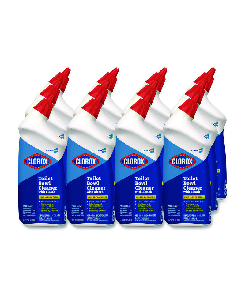 Clorox® CloroxPro® Toilet Bowl Cleaner with Bleach cleans, disinfects and deodorizes toilets with the power of bleach. The gel formula clings to the bowl's surface to provide a deep clean. CloroxPro® Toilet Bowl Cleaner with Bleach helps eliminates stains, bacteria and odors, leaving your facility's toilet bowls sanitary and fresh. This toilet cleaner meets EPA criteria for use against SARS-CoV-2, the virus that causes COVID-19 on hard nonporous surfaces when used as directed and kills 99.9% of germs including Staphylococcus aureus (Staph), Enterococcus (Streptococcus) faecalis, Salmonella enterica, Pseudomonas aeruginosa (Pseudomonas), Candida albicans, Influenza A2 virus, Rhinovirus 39 and Rotavirus. From CloroxPro®, it's perfect for use in offices, day care centers, restaurants, hotels and other commercial facilities.