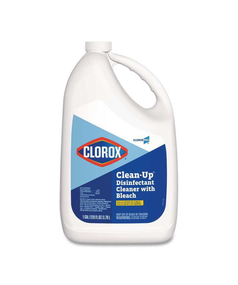 Clorox® CloroxPro® Clean-Up Disinfectant Cleaner with Bleach is a powerful one-step cleaner that you can remove stains, clean and disinfect confidently with the power of Clorox® Bleach. It eliminates odors caused by bacteria, mold and mildew. This disinfectant cleaner with bleach meets EPA criteria for use against SARS-CoV-2, the virus that causes COVID-19 on hard nonporous surfaces when used as directed. From CloroxPro®, this fresh smelling spray cleaner is perfect for use in offices, day care centers, restaurants, schools and other commercial facilities. Spray every drop with Smart Tube® technology that reaches to the very bottom of the bottle. Packaging may vary.
