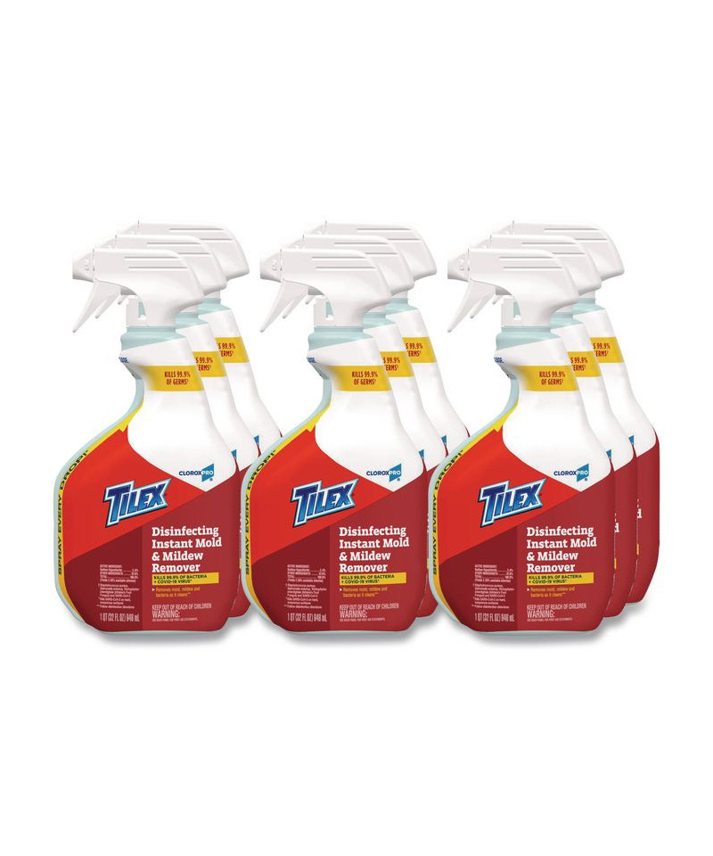 Target tough mold and mildew stains with Tilex® CloroxPro® Disinfecting Instant Mold and Mildew Remover. Using the power of Clorox® Bleach, this disinfectant spray kills 99.9% of germs including Staphylococcus aureus, Salmonella enterica, Trichophyton interdigitale (Athlete's Foot Fungus) and SARS-CoV-2, COVID-19 virus on hard nonporous surfaces when used as directed. The cleaner eliminates tough mold and mildew stains without scrubbing on hard nonporous surfaces. Safe for use on kitchen and bathroom surfaces, this Clorox® spray cleans and whitens tile and grout, so you can use it on counters, sinks, tubs, showers and backsplashes. It even prevents the regrowth of mold and mildew for up to four weeks and is ideal for use in offices, day care centers, schools, hotels, restaurants and other commercial facilities.