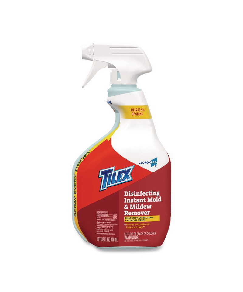 Target tough mold and mildew stains with Tilex® CloroxPro® Disinfecting Instant Mold and Mildew Remover. Using the power of Clorox® Bleach, this disinfectant spray kills 99.9% of germs including Staphylococcus aureus, Salmonella enterica, Trichophyton interdigitale (Athlete's Foot Fungus) and SARS-CoV-2, COVID-19 virus on hard nonporous surfaces when used as directed. The cleaner eliminates tough mold and mildew stains without scrubbing on hard nonporous surfaces. Safe for use on kitchen and bathroom surfaces, this Clorox® spray cleans and whitens tile and grout, so you can use it on counters, sinks, tubs, showers and backsplashes. It even prevents the regrowth of mold and mildew for up to four weeks and is ideal for use in offices, day care centers, schools, hotels, restaurants and other commercial facilities.