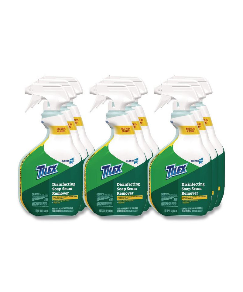 The powerful formula of Tilex® CloroxPro® Disinfecting Soap Scum Remover Spray cleans soap scum before your eyes. Its penetrating foam removes soap scum and hard water deposits on surfaces to help prevent buildup from calcium, lime and rust. It also kills 99.9% of germs including Staphylococcus aureus, Salmonella enterica and the COVID-19 virus on hard nonporous surfaces when used as directed. Great on many surfaces including glazed ceramic tile, fiberglass, shower doors, toilets and sinks, this spray cleaner is ideal for offices, day care centers, restaurants, hotels and other commercial facilities. CloroxPro® where clean means everything. Packaging may vary.
