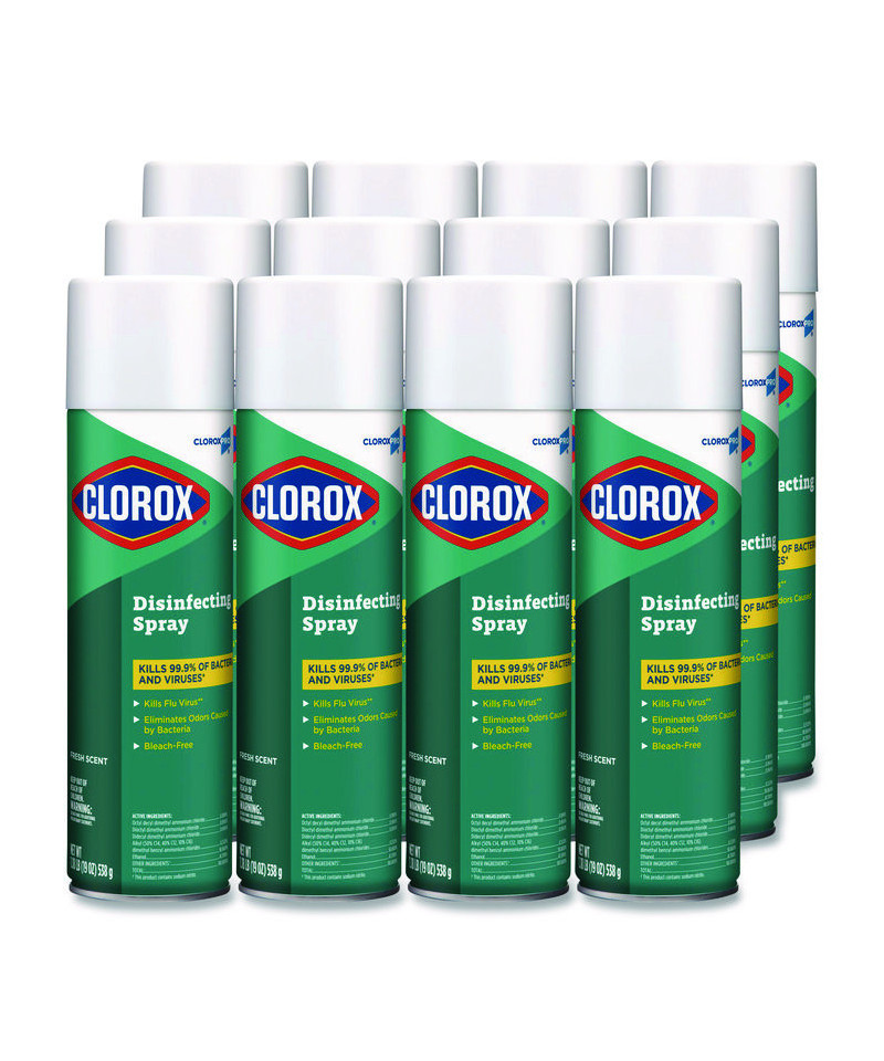 Fight germs and odor in your facility with Clorox® Disinfecting Spray that kills 99.9% of bacteria and viruses on hard nonporous surfaces. Tested according to the AOAC Germicidal Spray Product Test for disinfectants, this trusted product eliminates odors caused by bacteria and kills flu virus. It is EPA registered to kill as many as 64 microorganisms, and it kills most bacteria on its EPA Master Label in three minutes. With incredible versatility, Clorox® Disinfecting Spray can be used on a wide variety of hard surfaces like garbage cans, diaper pails, changing tables, gym equipment, tables, toilet seats, faucets, sinks, countertops, doorknobs, telephones and more. From CloroxPro®, this disinfecting spray is ideal for use in schools, dorms, day care centers, offices, kitchens, restaurants, hospitals, hotels, health clubs, public areas and more.