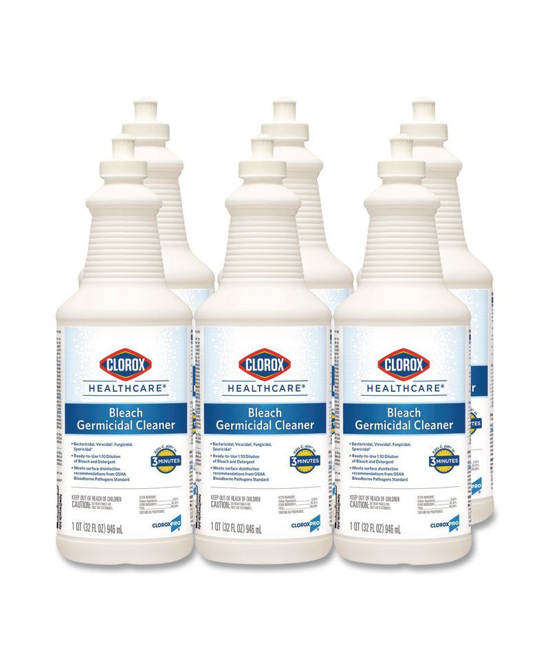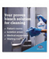 Your proven bleach solution for cleaning. Clorox Healthcare® Bleach Germicidal Cleaner kills C. difficile and C. auris in three minutes and over 50 other microorganisms in one minute or less, including outbreak causing viruses, emerging viral pathogens, MRSA and VRE when used as directed. Compatible with common healthcare surfaces including plastics and stainless steel, this versatile hospital cleaner is even recommended in medical equipment cleaning and care guides. Use in healthcare settings including hospitals, medical facilities, outpatient facilities and long-term care facilities. Follow special instructions for cleaning prior to disinfection. A precleaning step is required to kill Clostridioides difficile and Candida auris.