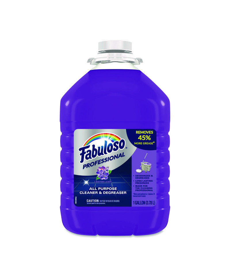 This all-purpose cleaner and degreaser brings joy to your cleaning routine. With its pleasant scent, it not only tackles all kinds of messes but also fills your space with a delightful aroma. The Fabuloso® Professional formula cuts through grease, grime and dirt while maintaining a neutral pH that is safe for various surfaces. Designed for residential, commercial and industrial use, this cleaner leaves no visible residue and eliminates the need for rinsing. Embrace a long-lasting fragrance that will surely delight. Not only does our cleaner have a delightful scent, but it also boasts a concentrated formula that allows you to get twice as many uses out of the same bottle size as the previous Fabuloso® Professional formula. When it comes to industrial use, this all-purpose cleaner and degreaser is the perfect choice. Our cleaner is incredibly versatile and can be used on a wide range of surfaces, including countertops, floors and appliances. Cleaner can be used with a sponge or a mop. Mix 1 ounce in a gallon of water to remove grease, grime and dirt. Use in toilet bowls to clean and deodorize. At the end of the day, our concentrated all-purpose cleaner and degreaser is the perfect choice for anyone looking to achieve a clean, fresh space. So why wait? Try it out today and enjoy the benefits!