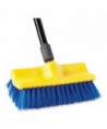 Versatile brush cleans easily in difficult spots. Split-brush shape has straight and angled bristles. For wet scrubbing in open areas and under equipment. Long-lasting polypropylene fibers resist stains. Accepts threaded handles. Handles sold separately.