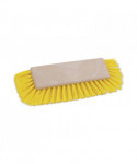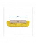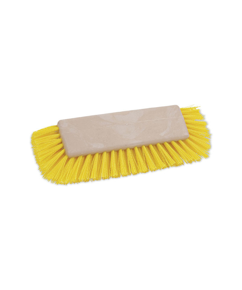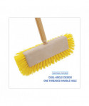 Dual-angle, brush with full half-circle bristle orientation simplifies baseboard and tight corner scrubbing tasks. Packed yellow, plastic bristles enable pressure transfer for more effective scrubbing, brushing, and moving debris. Crimped, extra-absorbent fibers provide excellent liquid-holding properties. The threaded handle hole allows you to easily screw in handles. Built with a strong and durable, 10" plastic head for use with threaded 1.13-inch diameter handles, which are sold separately.