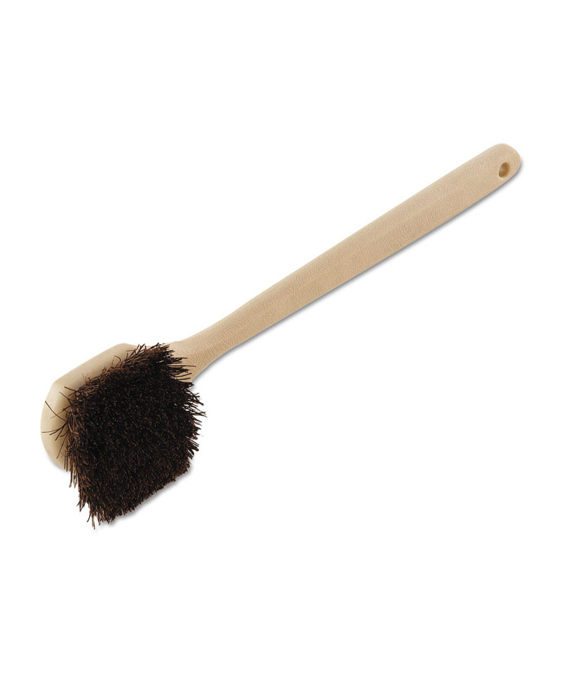 Utility Brush, Brown Palmyra Fiber Bristles, 5.5" Brush, 14.5" Tan Plastic Handle