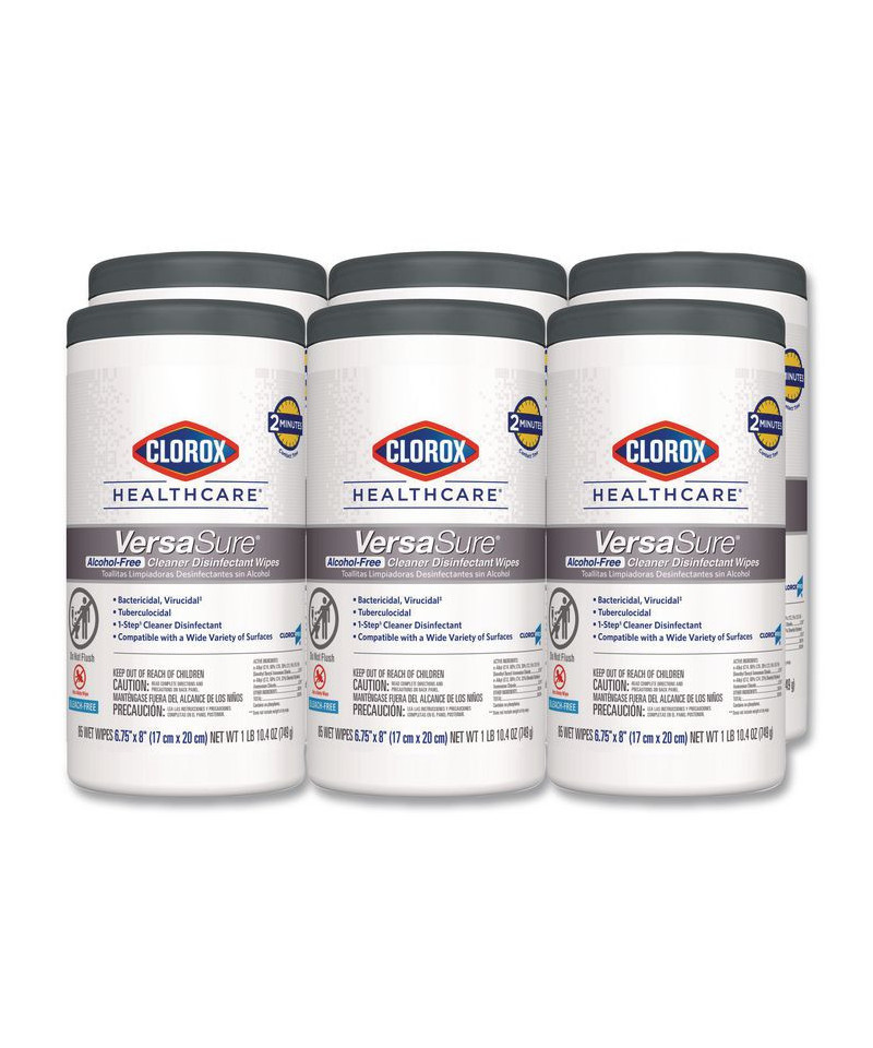 Clorox Healthcare® VersaSure Cleaner™ Disinfectant Wipes kill over 40 pathogens quickly on a broad range of surfaces. These strong and durable clothlike wipes are your alcohol-free solution to cleaning and disinfecting. VersaSure wipes are EPA registered to kill pathogens on hard surfaces in as fast as 30 seconds for most bacteria and viruses, including mumps, measles, MRSA and tuberculosis. These one step disinfecting wipes meet EPA efficacy testing requirements for hospital disinfection, making them great for daily use in your healthcare facility. Designed for patient and staff comfort, the alcohol free quat formula is made with no harsh chemical odors, fumes or added fragrances. The nonwoven wipe does not leave lint on surfaces, and the larger wipe covers more surface area with less effort. Intended for use in healthcare settings.