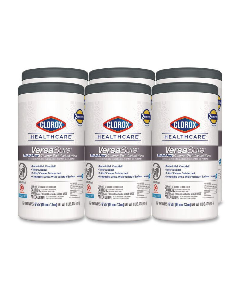Clorox Healthcare® VersaSure Cleaner™ Disinfectant Wipes kill over 40 pathogens quickly on a broad range of surfaces. These strong and durable clothlike wipes are your alcohol-free solution to cleaning and disinfecting. VersaSure wipes are EPA registered to kill pathogens on hard surfaces in as fast as 30 seconds for most bacteria and viruses, including mumps, measles, MRSA and tuberculosis. These one step disinfecting wipes meet EPA efficacy testing requirements for hospital disinfection, making them great for daily use in your healthcare facility. Designed for patient and staff comfort, the alcohol free quat formula is made with no harsh chemical odors, fumes or added fragrances. The nonwoven wipe does not leave lint on surfaces, and the larger wipe covers more surface area with less effort. Intended for use in healthcare settings.