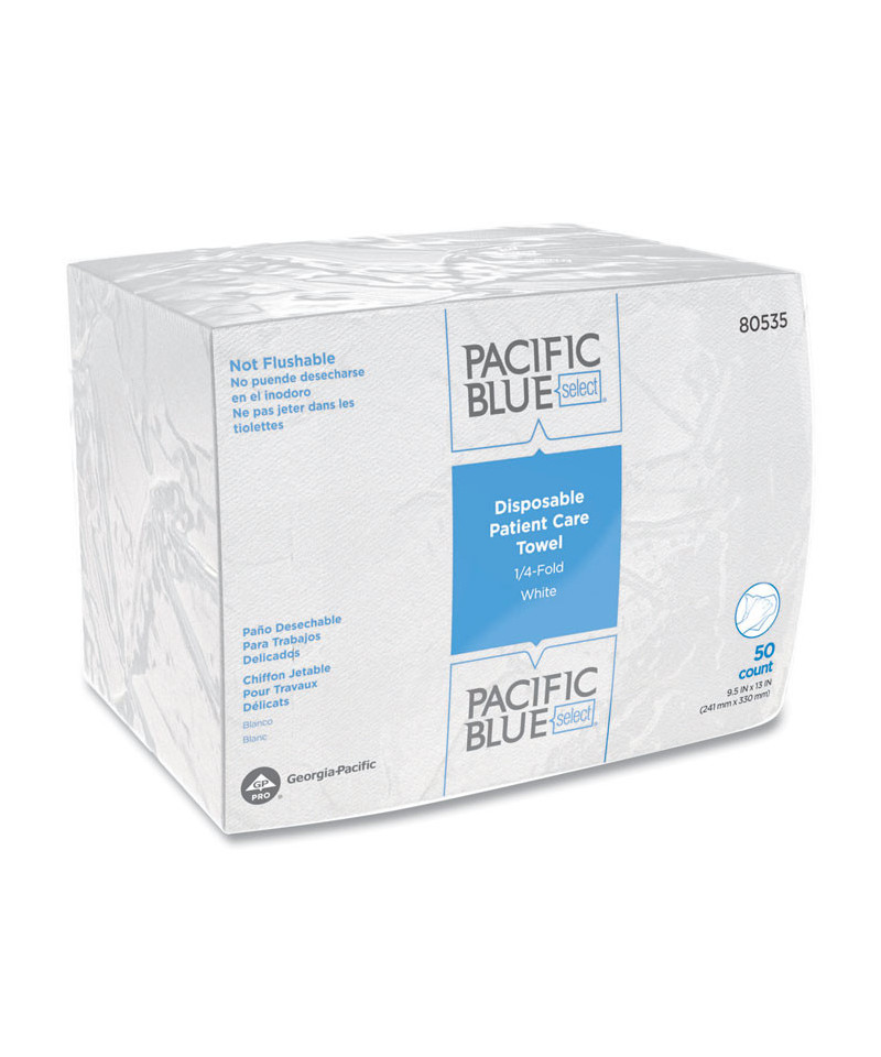 Pacific Blue Select A400 Disposable Patient Care Washcloths are premium-weight personal disposable washcloths. Made from airlaid bonded cellulose, these disposable bathroom towels deliver an excellent premium cloth replacement wiper for patient care and patient room cleaning. Specifically designed with softness in mind for personal care use, convenient Pacific Blue Select disposable washcloths for adults are thick and absorbent. They stay extremely soft and bulky when wet for extended use. Our Pacific Blue Select wipers feature a 1/4-fold design that provides fast dispensing for one or more disposable body washcloth at a time. They're packaged in our popular, space-saving, moisture-resistant poly packaging that makes it easy to take and dispense wipers wherever you need them.