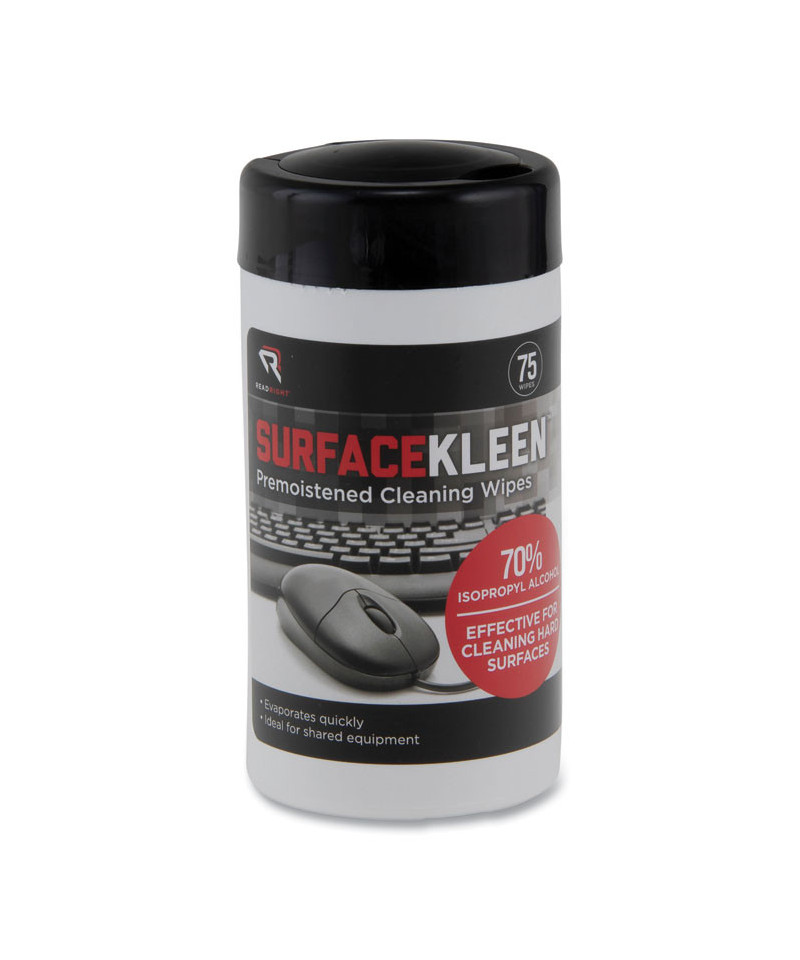 Effectively clean hard surfaces with Read Right SURFACEKLEEN Pre-Moistened Cleaning Wipes. Formulated with 70% IPA to clean most hard nonporous surfaces and evaporates quickly, leaving nearly zero oil traces. Safe for use on most smartphones and tablets.
