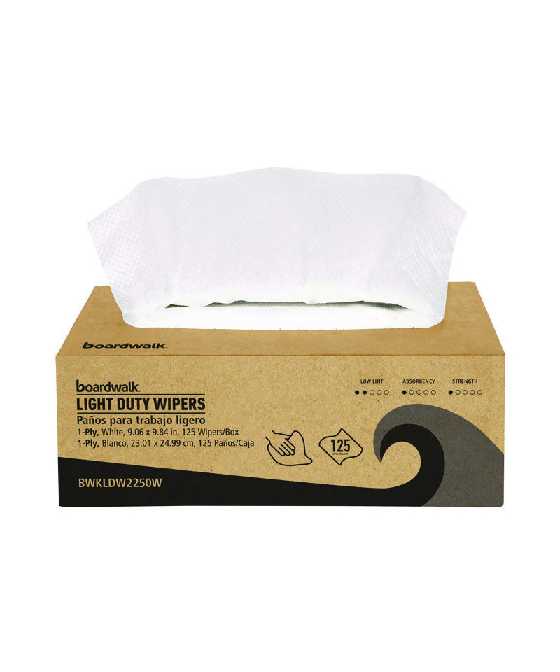 This Boardwalk wiper stands out with its light-duty, cost-effective design that ensures reliable and efficient cleaning across various tasks. Crafted using a through-air drying (TAD) process, these 1-ply wipers provide consistent sheet thickness while delivering enhanced absorption and softness. In comparison to standard paper towels, the Boardwalk wipers offer enhanced durability and performance, making them a more effective choice for a wide range of cleaning needs.
