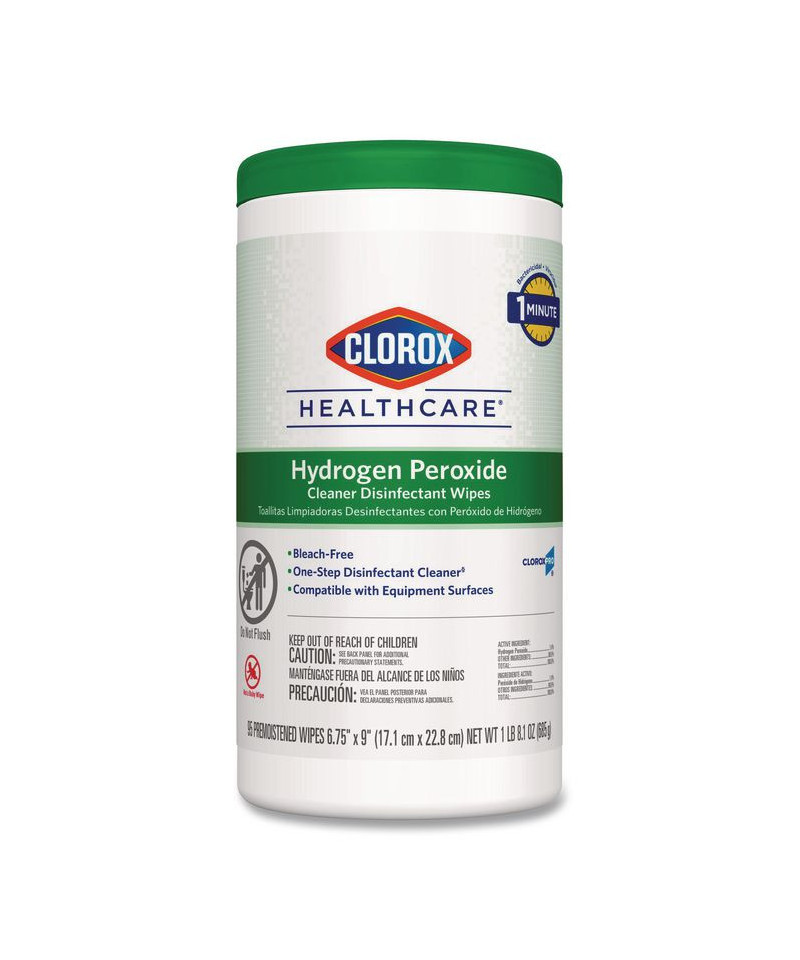 Great surface compatibility, less residue. Clorox Healthcare® Hydrogen Peroxide Cleaner Disinfectant Wipes leave no harsh chemical odor or fumes and kill bacteria and viruses in 30 seconds. Disinfect with one wipe that is registered to kill C. auris, 13 antibiotic resistant pathogens and multiple strains of MRSA. This ready to use broad spectrum disinfectant has a noncorrosive formula suitable for cleaning medical devices, common areas and high touch surfaces made of materials like stainless steel, painted metals, glass, chrome, glazed tile, plexiglass and sealed fiberglass. These Clorox Healthcare® hydrogen peroxide wipes are ideal for daily use in healthcare settings including hospitals, medical facilities, outpatient facilities and long-term care facilities.