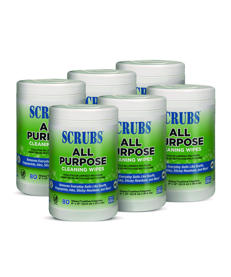 SCRUBS® All Purpose Cleaning Wipes combine a general purpose cleaning formula and a durable wipe that's safe for hands and effective at removing everyday soils like scuffs, fingerprints, inks, sticky residue, and more. Featuring a fresh citrus scent, these wipes contain no harsh chemicals and do not leave a heavy residue.