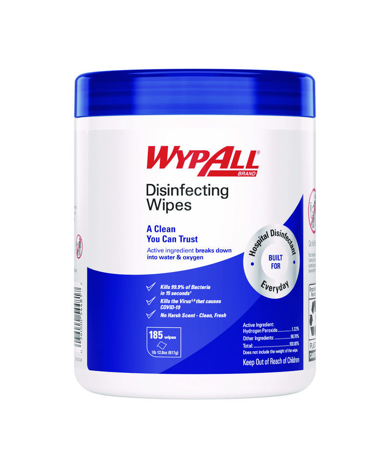 WypAll® Disinfecting Wipes offer a Clean You Can Trust with chemicals you can pronounce at a price you can afford. Activated with biodegradable hydrogen peroxide, the clean, fresh-scented WypAll® formula packs a punch by killing pathogens such as Norovirus and the COVID-19 virus on hard, nonporous surfaces when used as directed, while being approved for use in commercial, industrial, and healthcare settings. It is also designed to meet the lowest EPA-defined human toxicity levels for disinfecting wipes, which means they can be labeled without the "Hazards to Humans" or "Wash Hands After Use" warnings typically noted on the vast majority of disinfecting wipes canisters. Configured for businesses, WypAll® Disinfecting Wipes come in canisters with a high sheet count. WypAll® Disinfecting Wipes deliver a reasonable cost per wipe with efficient storage, making it easier to handle for your people and your pocketbook.