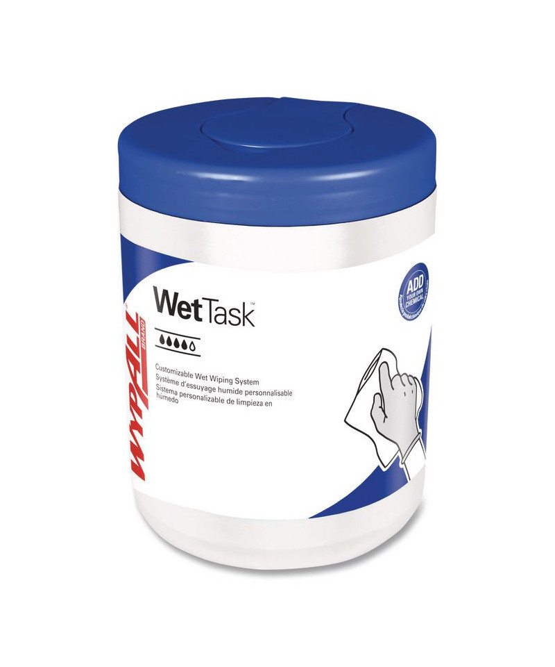 WypAll® CriticalClean™ WetTask™ Wipes for Bleach, Disinfectants and Sanitizers are an effective, efficient alternative to open bucket/towel or spray/towel cleaning. They're built for critical tasks, such as health care and food service surface cleaning where effective, easy-to-use cleaning tools are of utmost importance. WypAll® CriticalClean™ meltblown wipes are designed specifically for compatibility with Quats (quaternary ammonium compounds) and bleach to ensure continuous PPM active strength over at least 24 hours. The airtight closed bucket system enables cleaners and patrons alike to avoid mist exposure from spray as well as vapor and potential splash exposure from an open bucket. With its enclosed disposable wiping system, WetTask™ can cut chemical usage by 20%, eliminate laundering and reduce VOC emissions for a more hygienic, cost-effective workplace.