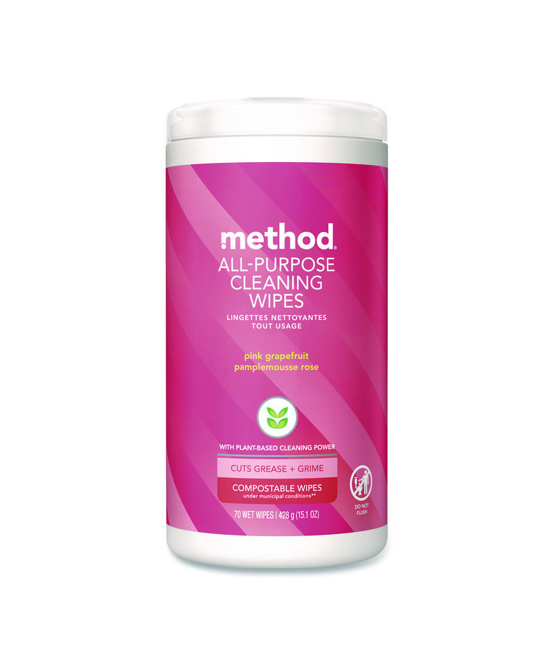 All Purpose Cleaning Wipes, 1 Ply, Pink Grapefruit, White, 70/Pack