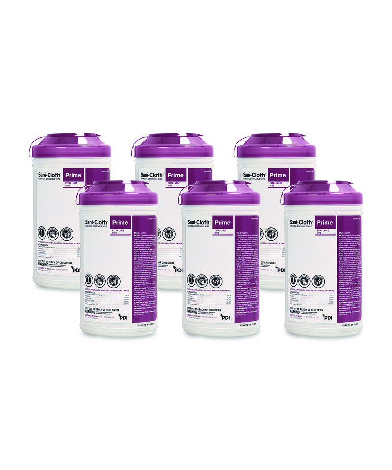 Sani-Cloth Prime Germicidal Disposable Wipes, Extra-Large, 1-Ply, 7.5 x 15, Unscented, White, 70/Canister, 6 Canisters/Carton