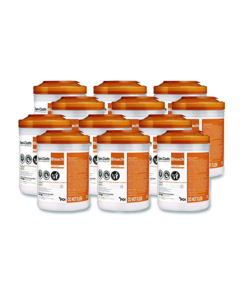 Sani-Cloth Bleach Germicidal Disposable Wipes, 1-Ply, 6 x 5, Unscented, White, 160/Canister, 12 Canisters/Carton