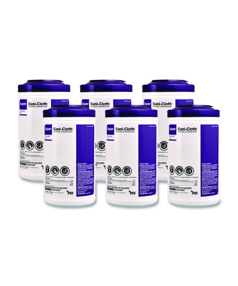 Fast, two-minute contact time allows for a quick room turnover. These PDI Super Sani-Cloth wipes are perfect for daily use in fast-paced environments that require short contact times and broad coverage of microorganisms. Effective against enveloped/non-enveloped viruses, bacteria, tuberculosis, fungi, multidrug-resistant bacteria, and blood-borne pathogens. Effective against SARS-CoV-2 (coronavirus), the virus that causes COVID-19 (on EPA List N). Compatible with over 560 devices and surfaces.