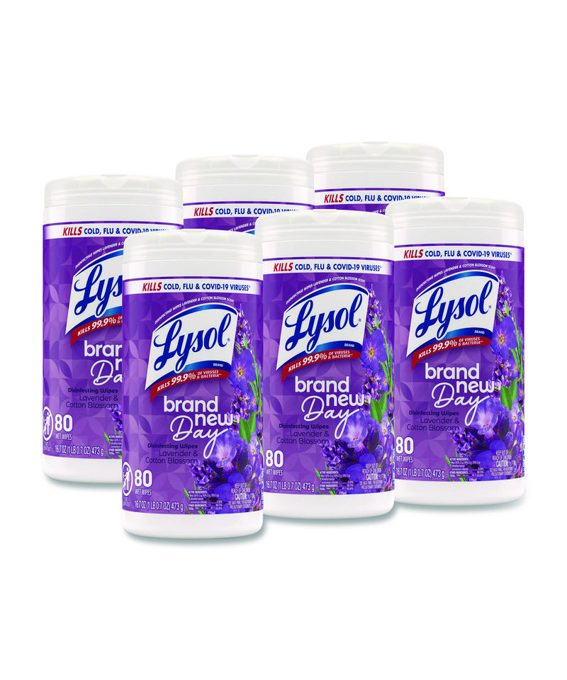 Disinfecting Wipes, 1-Ply, 7 x 7.25, Lavender and Cotton Blossom, White, 80 Wipes/Canister, 6 Canisters/Carton