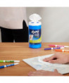 Combines liquid cleaner with a disposable wipe for smooth, convenient cleaning that removes ghosting and stubborn marker ink from most dry erase surfaces. Perfect for classroom use. Pop up container with freshness seal keeps wipes moist.
