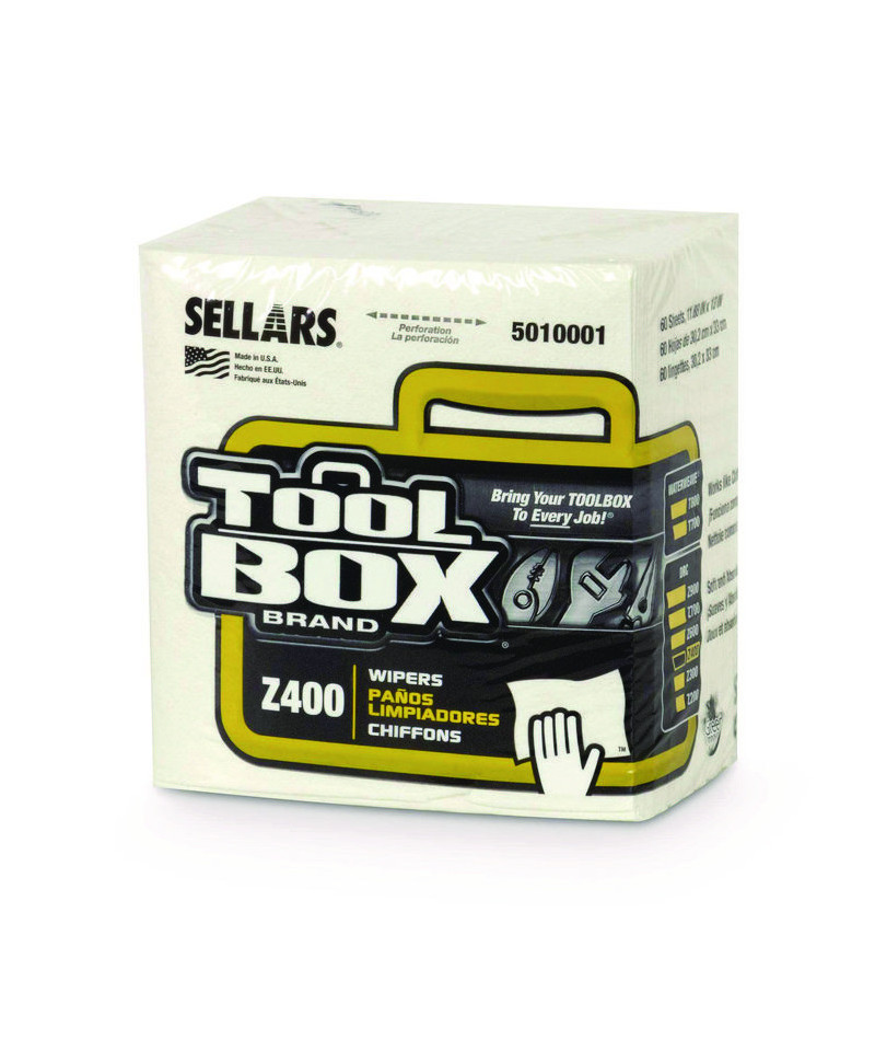 Conquer messes with the champion of wipers, TOOLBOX® Z400 Wipers. These industrial-grade wipers handle machinery grime, tackle larger spills, and conquer general cleaning tasks with ease. Compact quarterfold wipers stack neatly, hide discreetly, and maximize your cleaning efficiency.