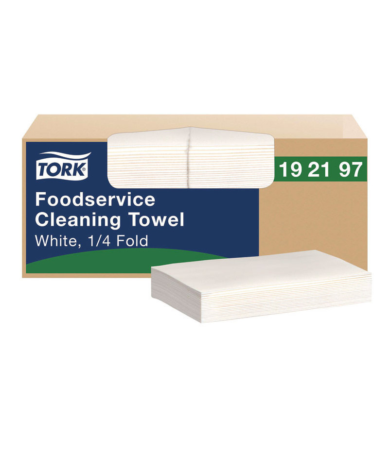 Tork® Foodservice Cleaning Towels are ideal for use in commercial kitchens where hygiene is a top priority. These foodservice towels are compatible with water-based cleaning and sanitizing solutions when the primary task is to deliver sanitizer to hard surfaces. Save staff time thanks to the easy-to-rinse, quick-drying material. Designating area of use by color is a foodservice best practice that reduces the potential for cross-contamination.