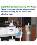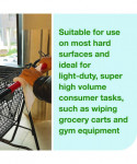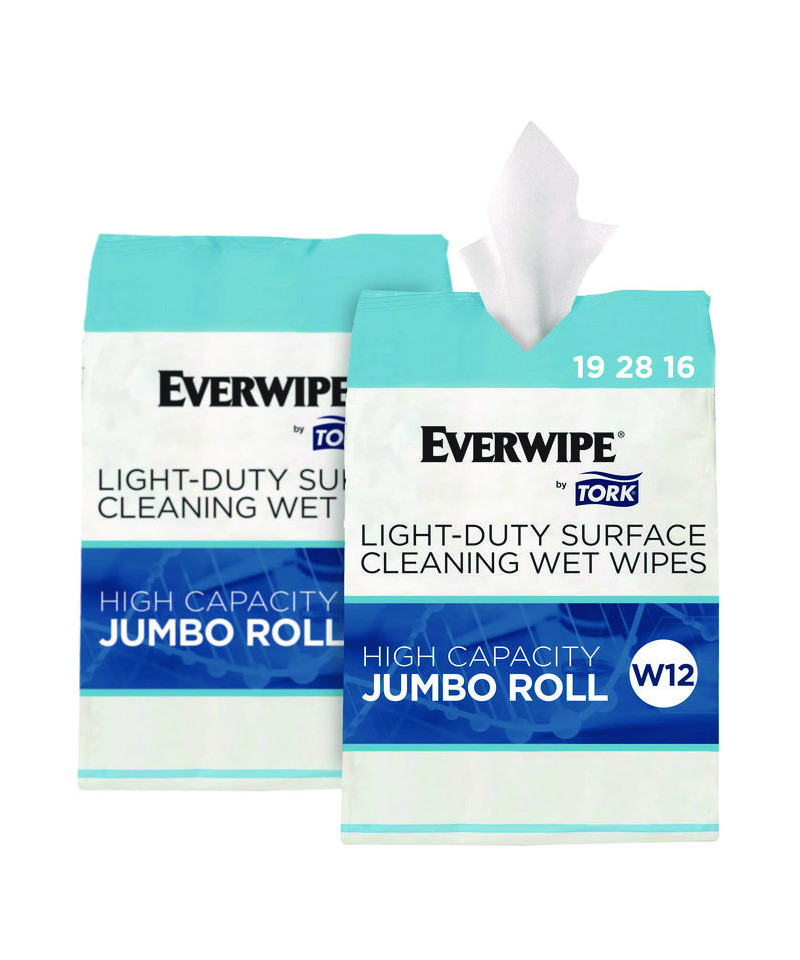 Make cleaning simple with these multipurpose cleaning wipes. These single-use cleaning wipes are designed to scrub and trap dirt for a quick and effective clean, while the pH-balanced formula cleans and deodorizes. They are suitable for use on most hard surfaces and are ideal for light-duty, super high-volume consumer tasks, such as wiping grocery carts and gym equipment. These wipes come in jumbo rolls, so staff won't need to refill as often, and are compatible with Everwipe by Tork W12 wet wipe dispensers.