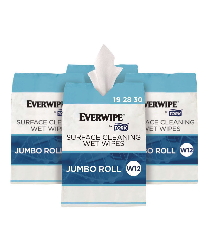 Make cleaning simple with these multipurpose cleaning wipes. These single-use cleaning wipes are designed to scrub and trap dirt for a quick and effective clean, while the pH-balanced formula cleans and deodorizes. They're suitable for use on most hard surfaces and come in jumbo rolls, so staff won't need to refill the compatible Everwipe by Tork wet wipe dispensers or buckets as often. Compatible with Everwipe by Tork W12 dispensers.