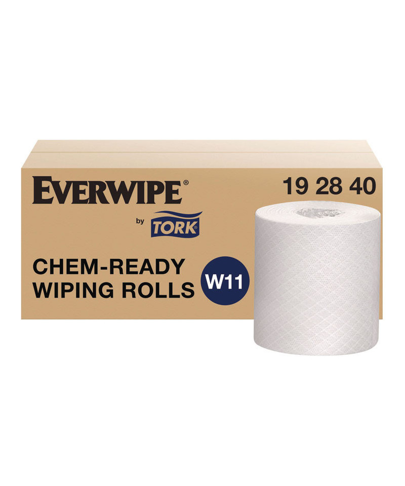 Save time and improve surface cleanliness with these Everwipe by Tork Chem-Ready Wiping Rolls. Simply place the roll of dry wipes into the compatible bucket and add your preferred water-based cleaning solution, sanitizer or disinfectant cleaning chemical. Chem-Ready provides closed system cleaning that's more hygienic, safer and simpler than traditional open bucket or spray bottle systems. Plus, these dry wipes are engineered with small pockets to effectively scrub and trap dirt. Compatible with the Everwipe by Tork W11 dispenser.