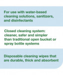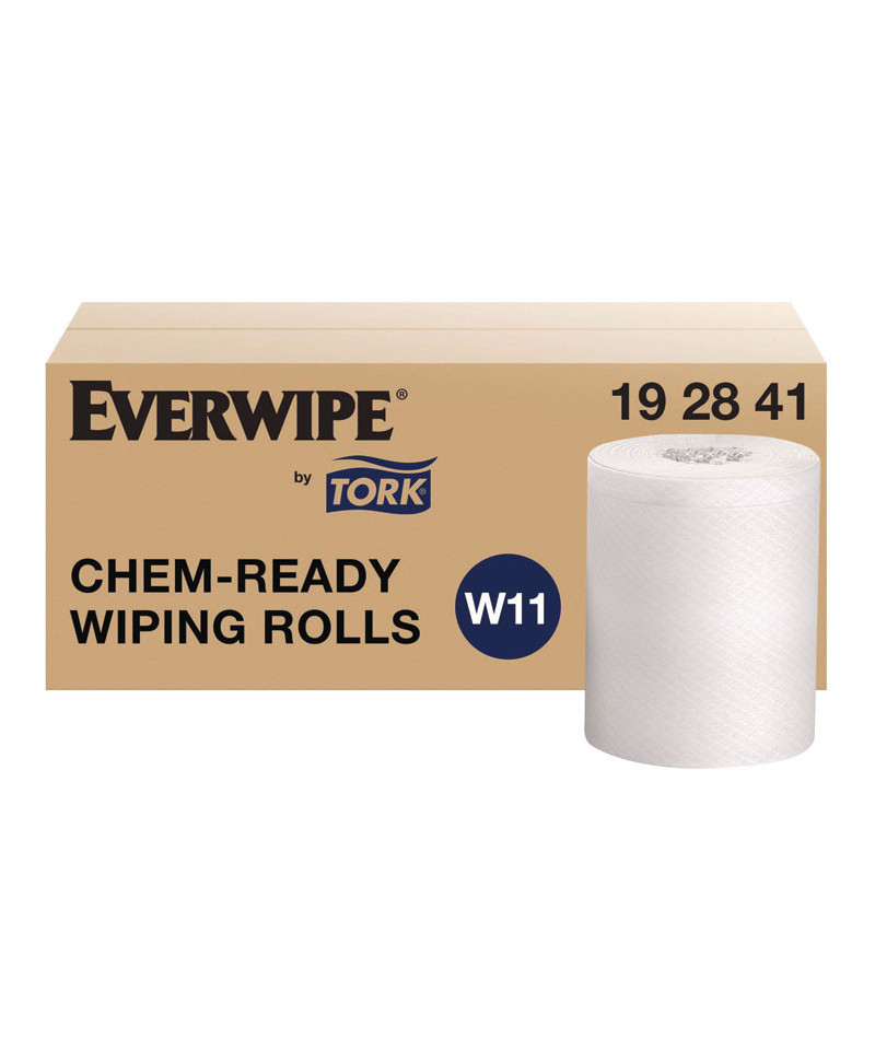 Save time and improve surface cleanliness with these Everwipe by Tork Chem-Ready Wiping Rolls. Simply place the roll of dry wipes into the compatible bucket and add your preferred water-based cleaning solution, sanitizer, or disinfectant cleaning chemical. Chem-Ready provides closed system cleaning that's more hygienic, safer and simpler than traditional open bucket or spray bottle systems. Plus, these dry wipes are engineered with small pockets to effectively scrub and trap dirt. Compatible with the Everwipe by Tork W11 dispenser.