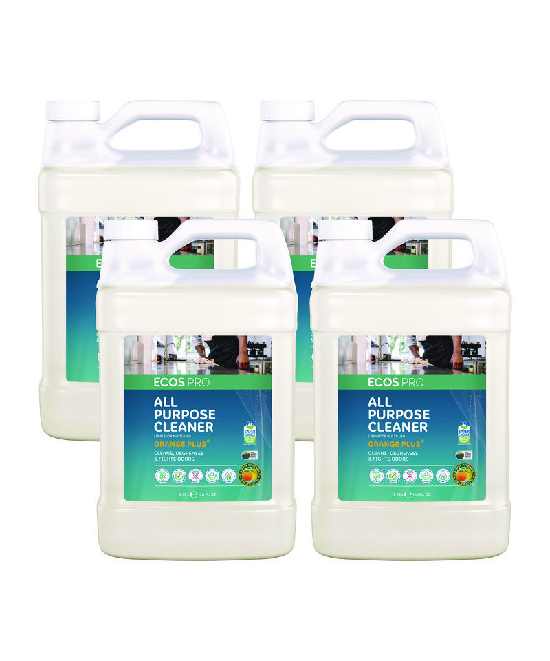 ECOS PRO Orange Plus is an all-purpose cleaner and degreaser that effectively lifts dirt, grime, scum, grease and adhesive residue with the power of citrus plants. Use it to clean and fight odors on water-safe surfaces. This formula is made using sustainable, plant-powered ingredients. Made without dyes; gray water and septic safe. Features a refreshing citrus scent. Not tested on animals. Manufactured in a facility that is LEED Zero Carbon, LEED Zero Waste and LEED Zero Energy Certified.