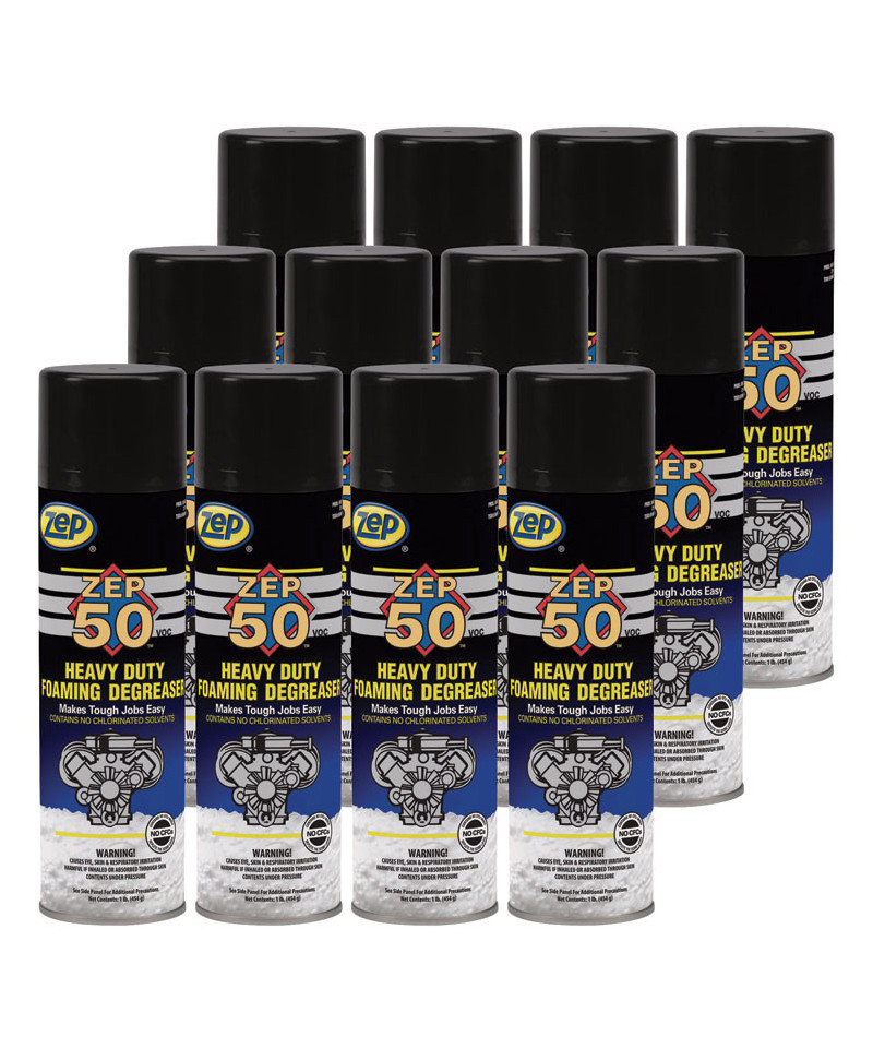 Zep 50 offers a swift and efficient solution for degreasing engines, equipment components, and machinery. It adeptly eliminates brake dust and grease from vehicle wheel covers and wire wheels while effectively eradicating grease and oil stains from concrete floors. Its stable foam formulation prolongs the interaction of solvents with contaminants, ensuring thorough cleaning even on vertical surfaces.