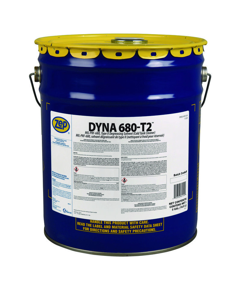 An economical solvent cleaner designed to quickly dissolve and flush away grease, oil, and other soils. It is safe to use on all metals, and is an excellent cleaner for automotive parts, weapons, and aircraft components. The elevated flash point of Dyna 680-T2 provides an added degree of safety in use and storage. It is RCRA Non-Hazardous and meets military specifications.
