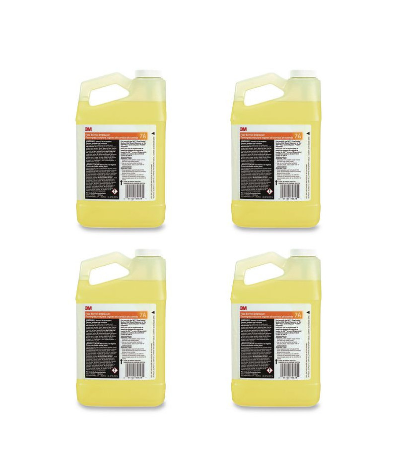 Simplify your kitchen cleaning routine with 3M™ Food Service Degreaser Concentrate 7A, a powerful degreaser designed to quickly and effectively remove food and oil-based soils from various hard surfaces, including walls, floors, tables and vinyl. Whether you're tackling grease buildup in kitchens or dining areas, this formula is up to the task. Each 0.5-gallon bottle of concentrate makes up to 149 gallons of ready-to-use cleaner, providing exceptional value. Its advanced design eliminates the need for measuring and mixing—simply use the 3M™ Flow Control Chemical Management System for automatic, accurate dilution. This reduces errors, saves time and ensures consistent results every time.